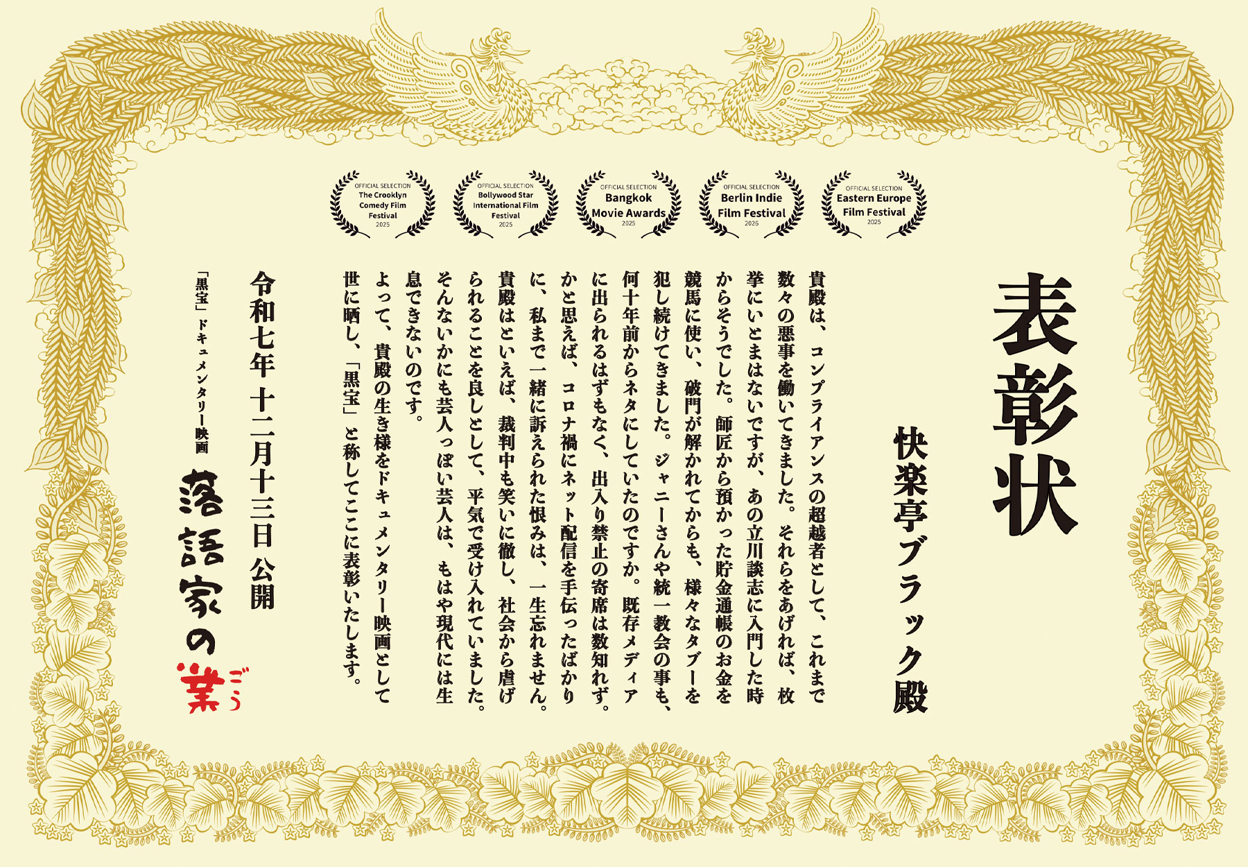 過激な落語で人気を集める一方、歌舞伎と日本映画に精通し、評論家、脚本家としても活動。初監督作品は2005年のオムニバス映画「『超』怖い話 THE MOVIE 闇の映画祭」。